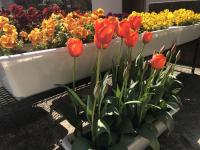 チューリップやクリサンセマムも、子どもたちの登校、首を長くしてまっています。