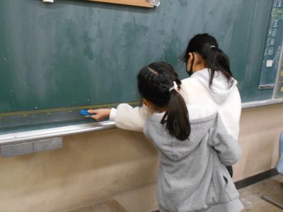2021年2月2日 15時48分2年生の子どもたちが、100cmものさしを使い、教室や廊下などで100cmをこえる長さ調べをしました。長さの予想をしてから実際の長さを測ると、長さの感覚の違いに驚く姿も見られました。楽しく長さ調べをしながら、100cmの量感をつかんでいきました。