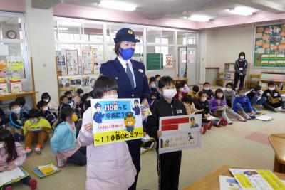 2021年2月1日 15時07分1月29日(金)に、3年生は、社会科「事件、事故からくらしを守る」の学習で、湯山駐在所長さんと松山東署の方に、警察のお仕事や110番の仕組みについてお話していただきました。手作りの紙芝居「110番のヒミツ」や、見事な逮捕術、警察官を志した理由、パトロールカーの見学など、盛りだくさんの内容でとても勉強になりました。最後にティッシュまでいただきました。今日(2月1日)は、お世話になったお礼の手紙を書きました。「ていねいな言葉で」「心のこもった字で」「感謝の気持ちを込めて」……お手紙をどのように書けばよいかしっかり考えて表現しました。