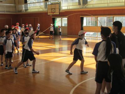 そのあとは、ITスタジアムの4分間の「8の字ジャンプ」にチャレンジしました。みんなが一つになって、記録更新に向けて頑張っています。