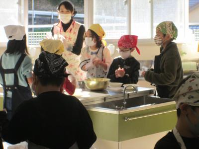 2020年11月26日 11時31分地域の方のご厚意で準備していただいた瓶詰めされた湯山特産のたけのこを使って、3年生がたけのこ調理に挑戦しました。