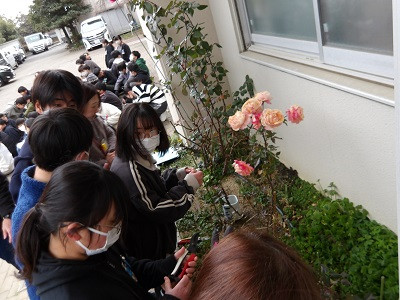 まずは、校長先生に陶芸教室の先生や生徒の皆さん、バラの植樹を手伝ってくださった方、松浦光祐PTA会長や清水智彦おやじの会会長、バラのお世話を手伝ってくださった校務員の先生方を紹介していただきました。6年生は、それぞれの代表の方からご挨拶やお祝いの言葉をいただきました。
