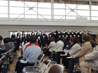 説明会の最初には、湯山中学校の2年生が歓迎の歌をプレゼントしてくれました。さすが中学生、子どもたちも中学生の立派な歌声に聞き入っていました。